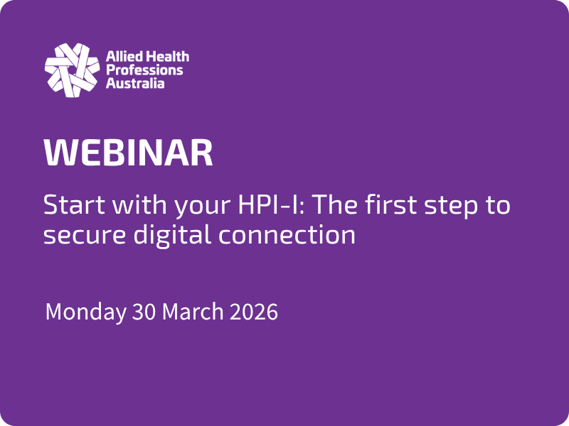 In this practical webinar, AHPA is joined by representatives from Services Australia and Ahpra to explain what HPI identifiers are, why they matter and how allied health professionals and organisations can obtain and use them correctly.